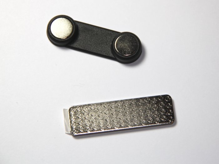 zapięcie magnetyczne w plastikowej obudowie - umożliwia przypięcie identyfikatora nie niszcząc ubrań